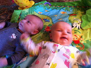 My friend Liz had baby John five days after I had Maddie. As much time as Liz and I spend together, they are bound to be good buds. Here they are sharing their morning together......
