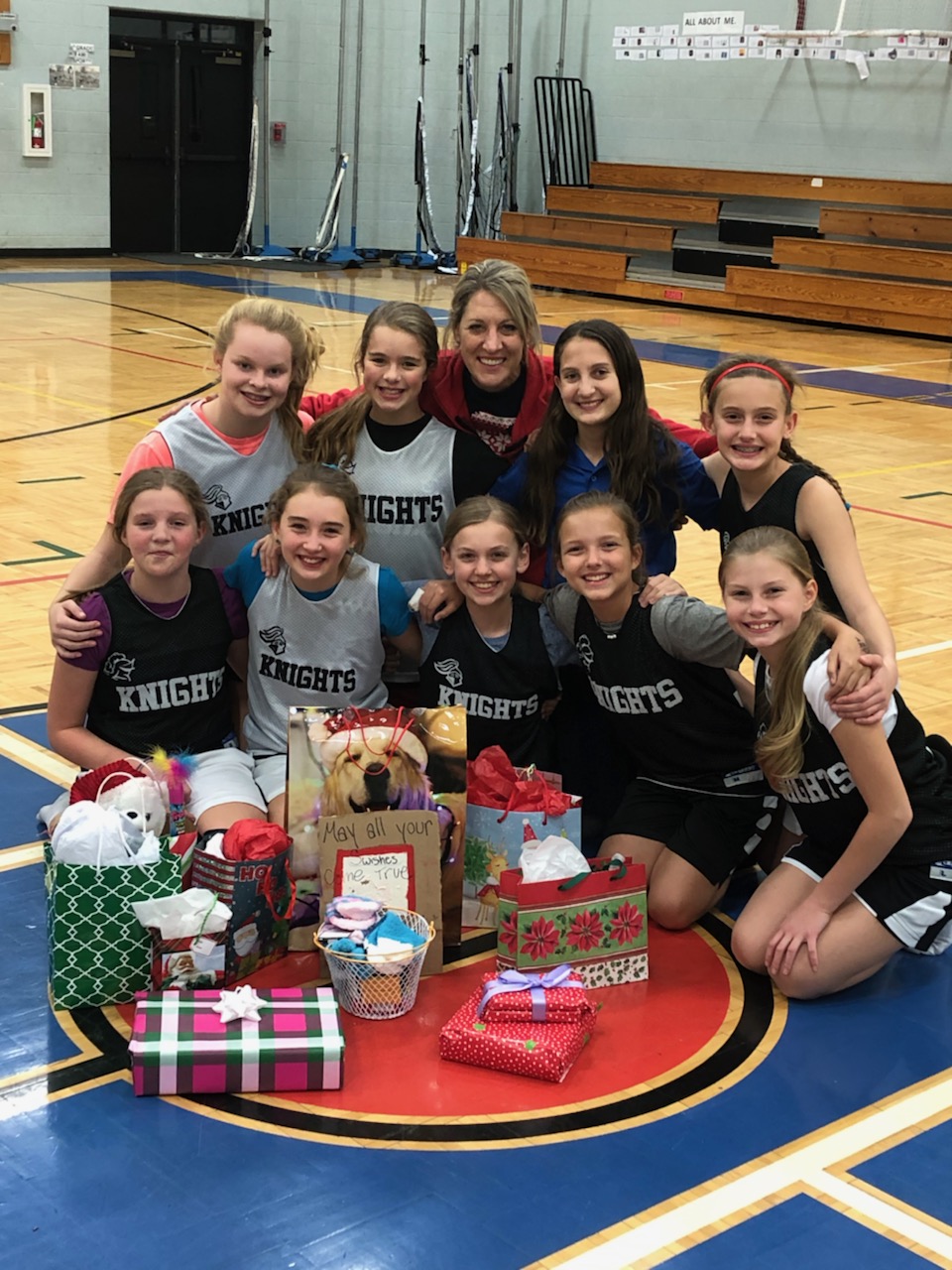Peyton's Knights basketball team had their little team gift exchange. Such good friends and nice girls on this team!!! Peyton loves her Knights teammates!! Great girls, great families, great coach!