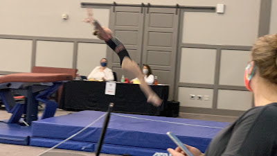 Maddie did not have her best meet. She did end up medalling, but I don't recall what she medalled in, as they didn't pass out the medals at the meet, due to trying to keep crowds small and distant. So they coaches handed out the medals at practice the next week. I know she came out with some, but I don't remember what they were.